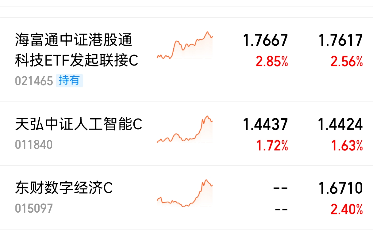 $海富通中证港股通科技ETF发起联接C(OTCFUND|021465)$涨幅2.56%