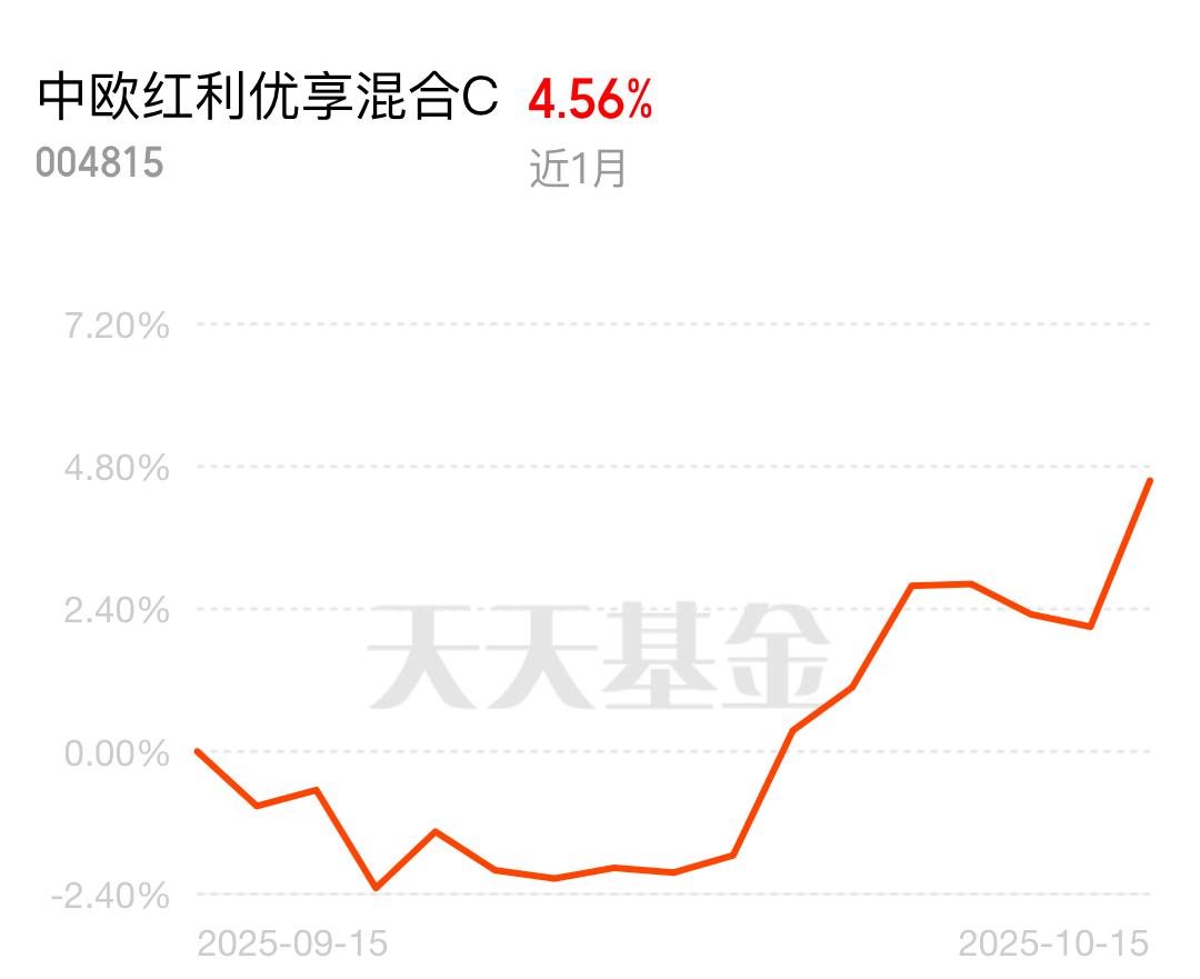下午有点跳水,看着就慌,市场调整没到位!中欧红利优享昨天涨2.41%,比好多科技