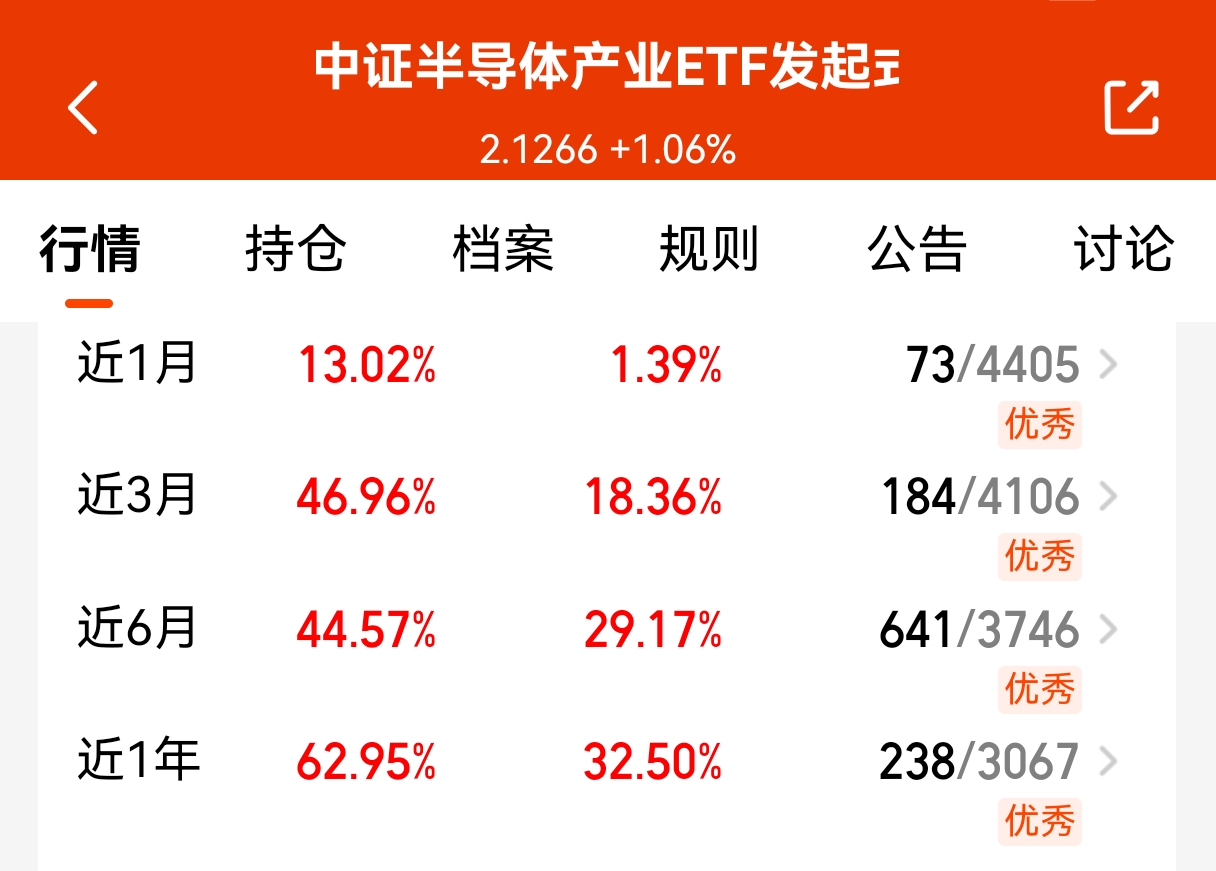 A股三大指数集体上涨,上证指数盘中上涨0.37%,海运、保险、煤炭等板块涨幅靠前,芯片科技股走强,$招商中证半导体产业ETF发起式联接C(OTCFUND|020465)$今日继续保持上涨,近一个月涨幅13.02%,近三个月涨幅46.96%,近一年涨幅62.95%,业绩还是可以的,当前存储涨价,两存扩产预期增强,硅片需求提升,光刻机各种催化利好多多。