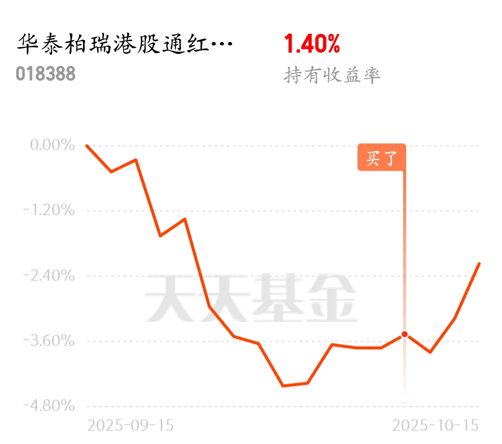 今天$华泰柏瑞港股通红利ETF联接基金C$估值又红了1%,实现三连涨!看来四季度