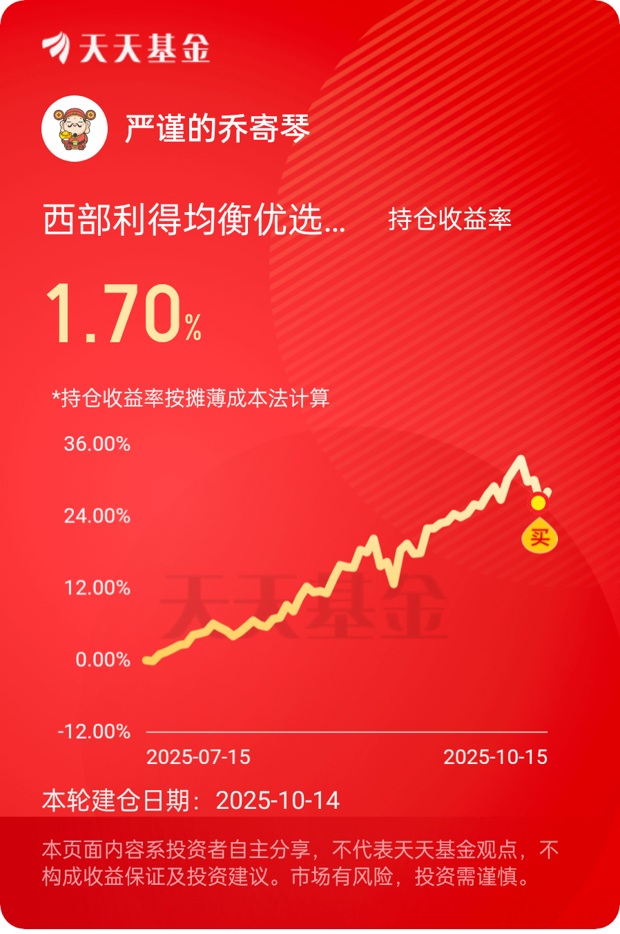 全线开花,昨天$天弘恒生科技ETF联接C$ 和$西部利得均衡优选混合C$ 都有肉吃,讲究一个配置平衡收益就很不错啊