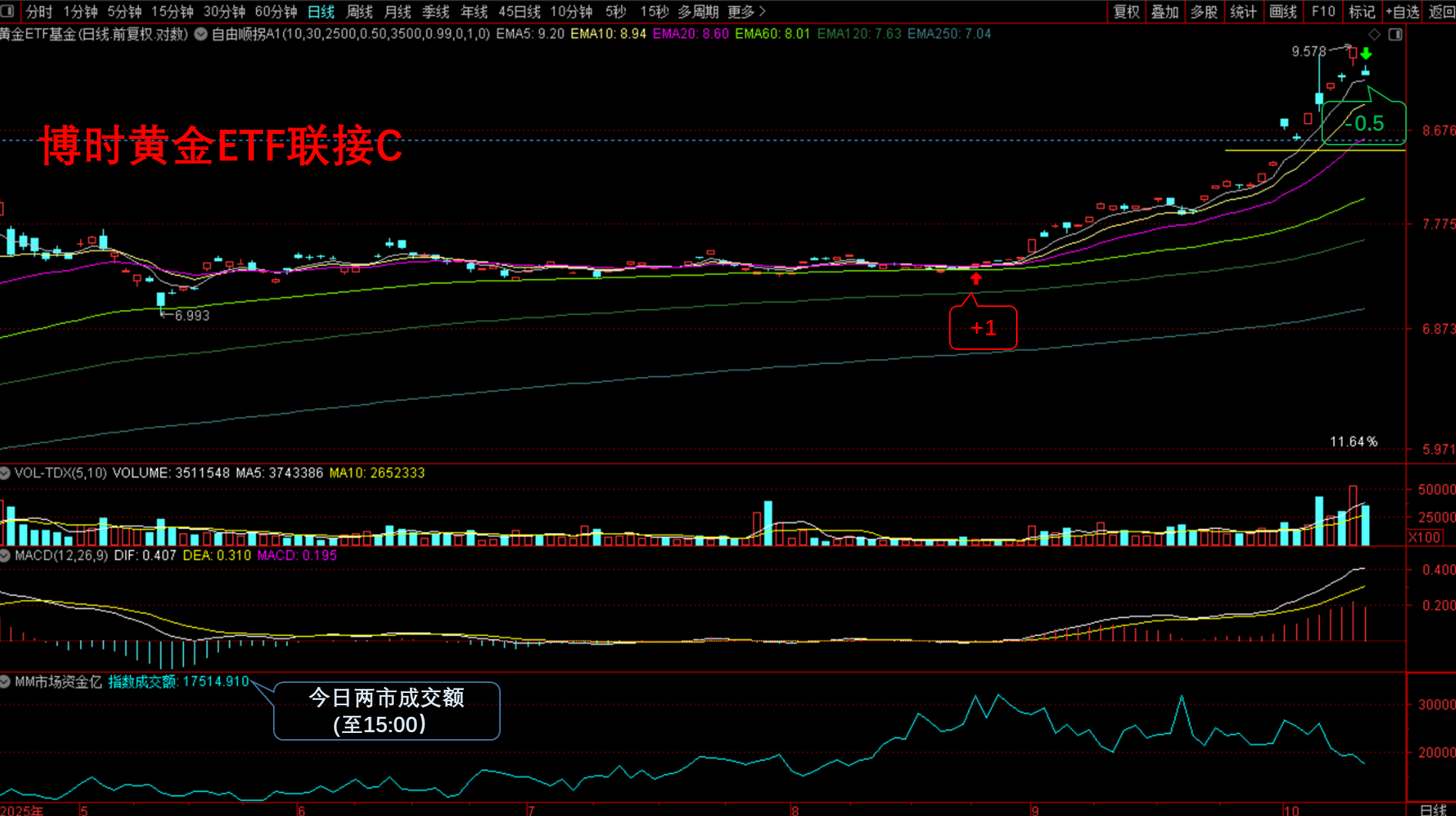 1. 博时黄金ETF联接C:在舱,今日-0.5。