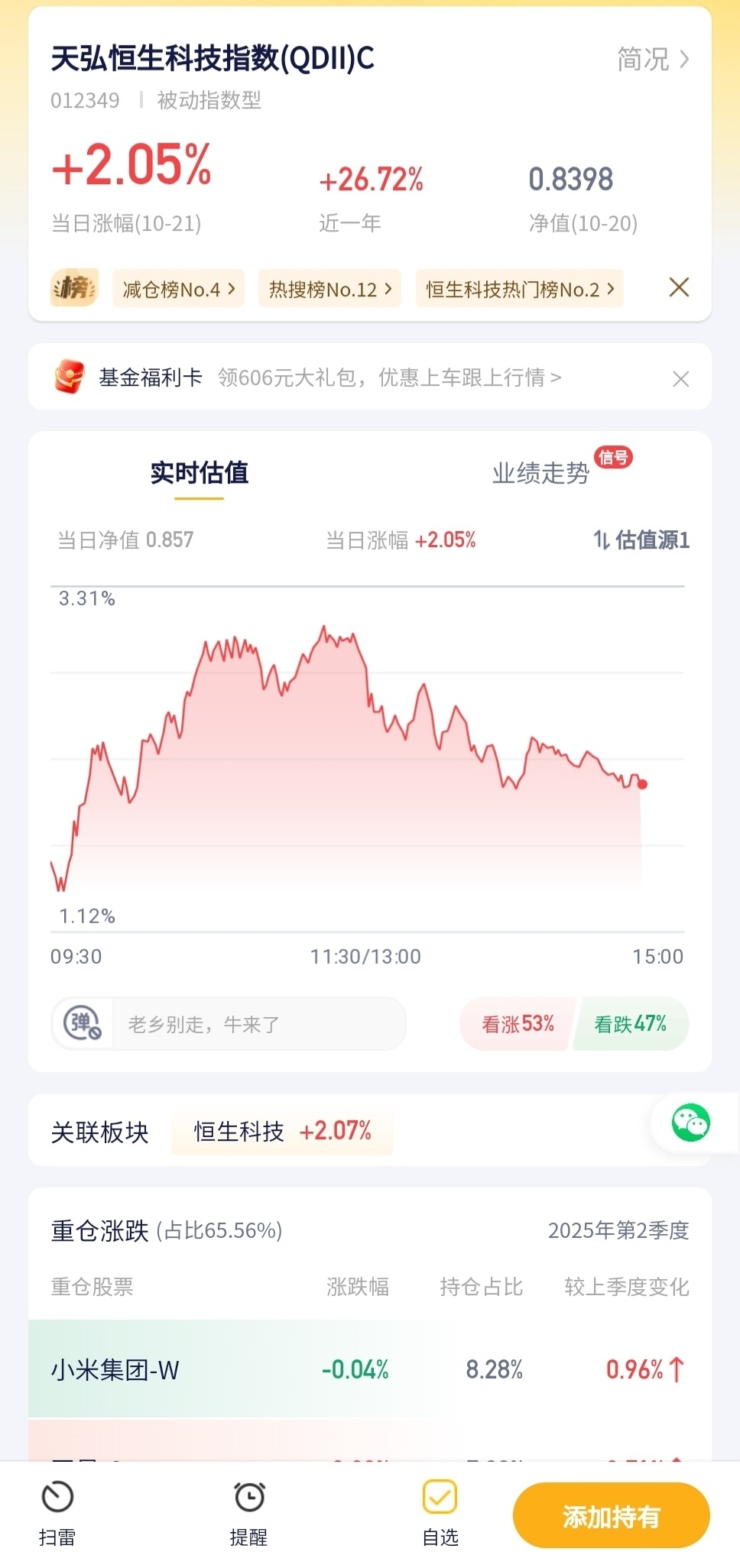 今儿这基金涨得不错,恒生科技板块今天表现可以,有资金推动,让它有了不错的涨幅。