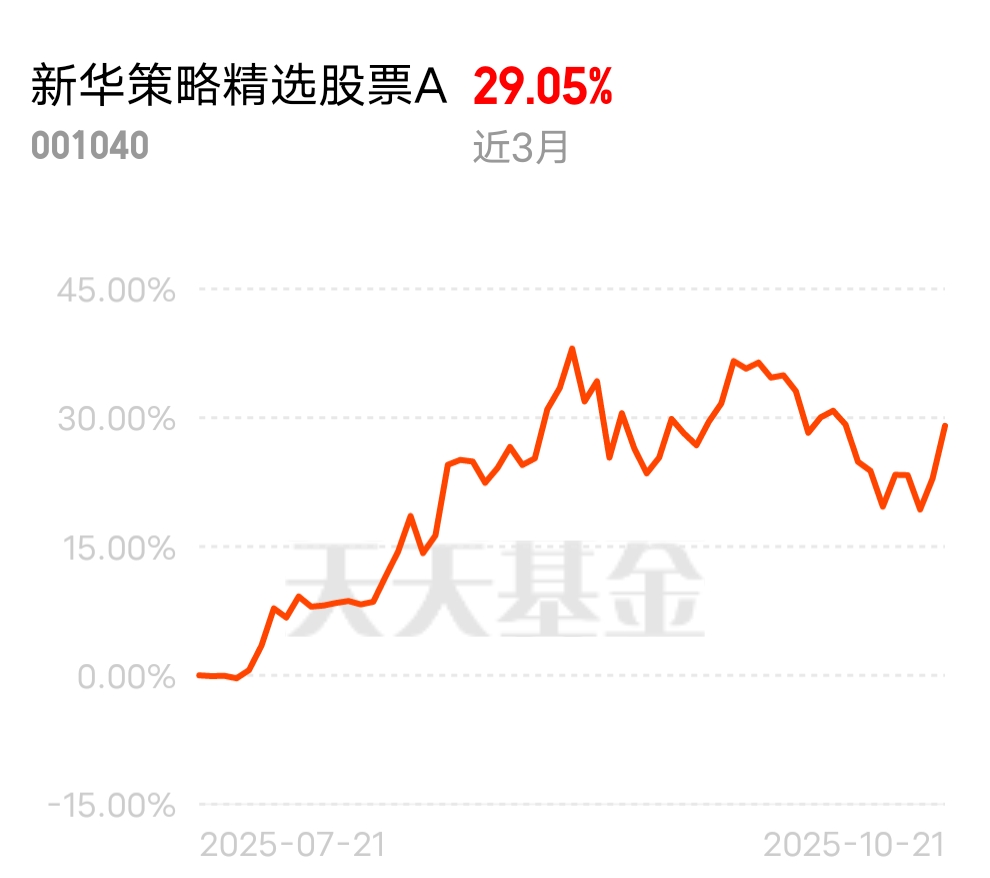 咱发现了,最近牛基稀缺,新华策略精选股票A却亮眼,昨晚涨5个点,近三月29.05