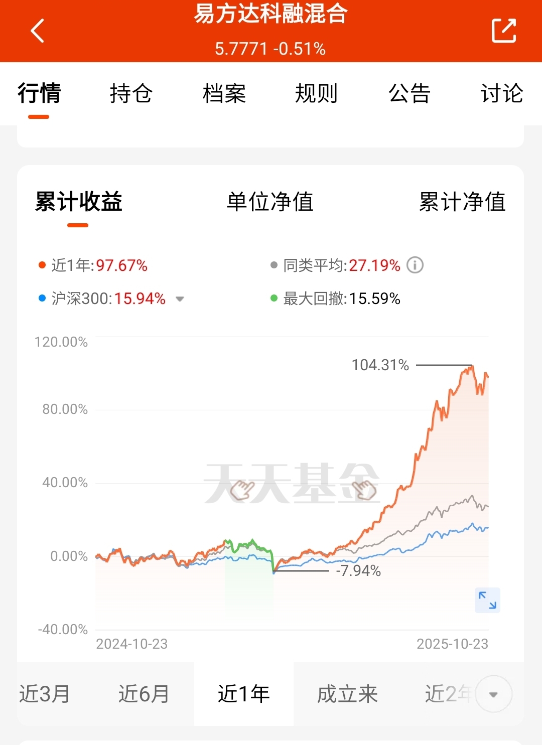 友友们,牛市行情里板块轮动还是有些快呢,追单一赛道还是有些风险的。所以我感觉易方达科融混合就比较优秀,他深度参与科技,新能源,军工板块,都是成长性高,发展空间大的板块呢。夏普比率优秀,是成长里的均衡之选