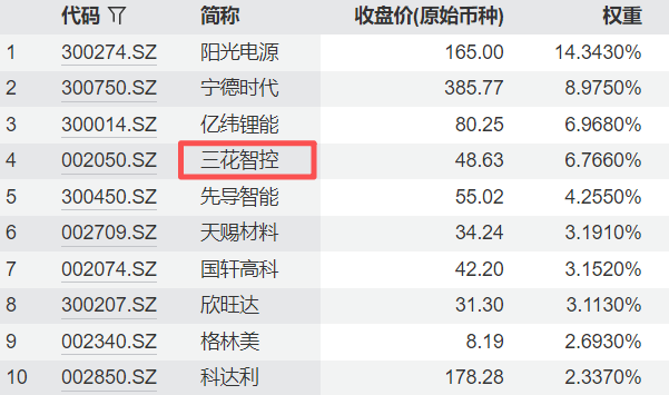 选CS电池这个指数,是因为除了电池以外,十大权重里,还有个机器人的特斯拉链龙头。