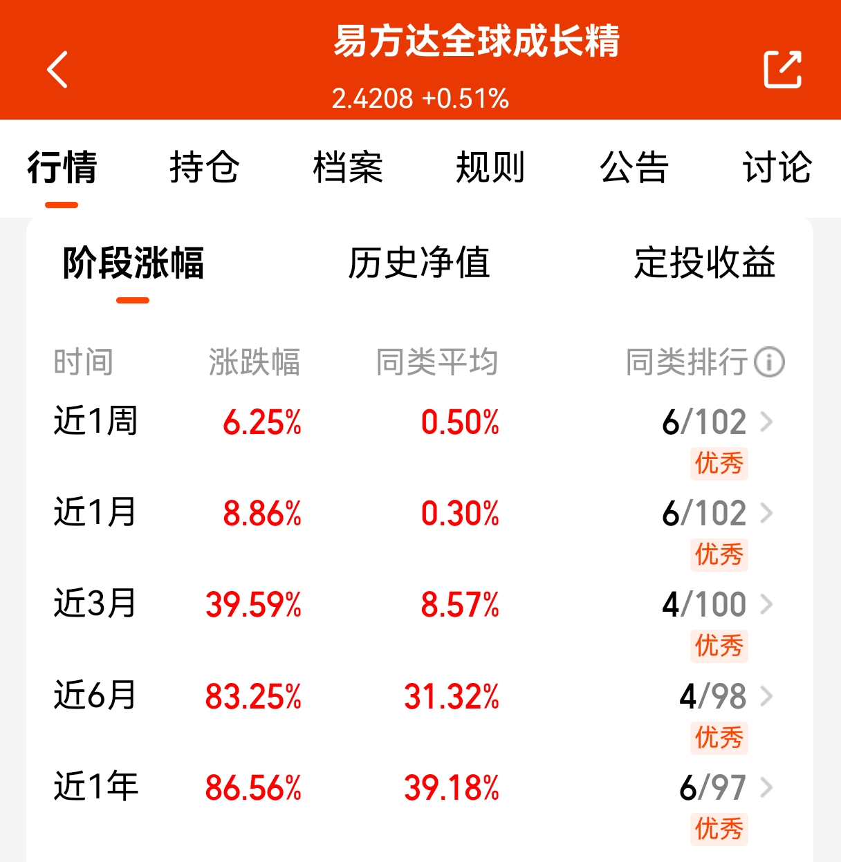 今年主线还是在科技这边的,果然没有让我们失望,科技涨势很嗨,能涨抗跌,确实很给力,易方达全球成长就很不错,近三个月涨幅39.59%,近六个月涨幅83.25%,业绩涨得很好,“跨市场布局+成长聚焦”的特色,成为把握全球成长红利的优质选择。