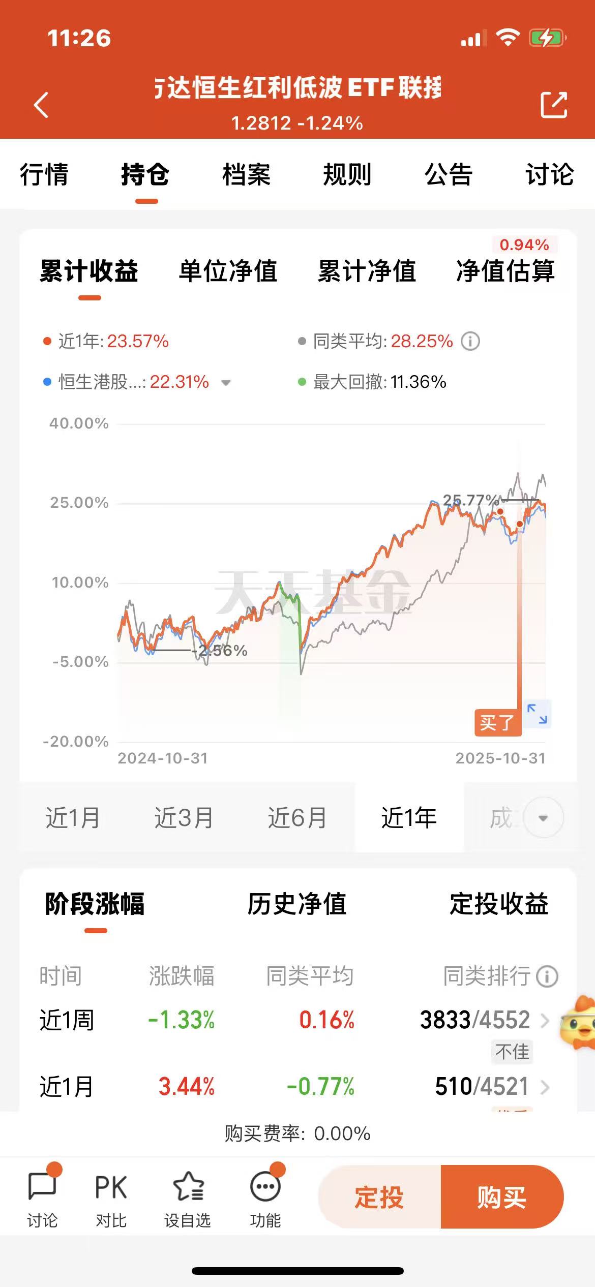 从另外一个角度来看,随着利率下跌,配置红利属性较强的板块,也能很好的实现稳健增涨的目标。长期持有下去,还能持平仓位波动,我想这也是大家都钟情红利的原因了。$易方达恒生红利低波ETF联接C(OTCFUND|021458)$