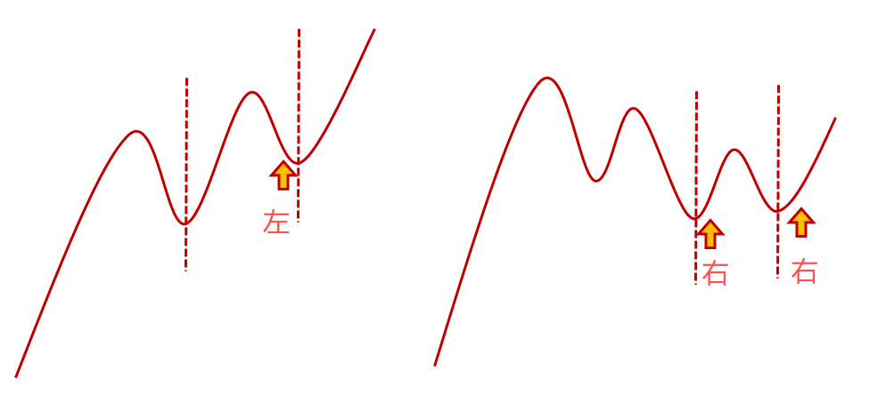 对于持续上涨趋势来说,我们可以考虑左侧入场,也就是虚线的左边。