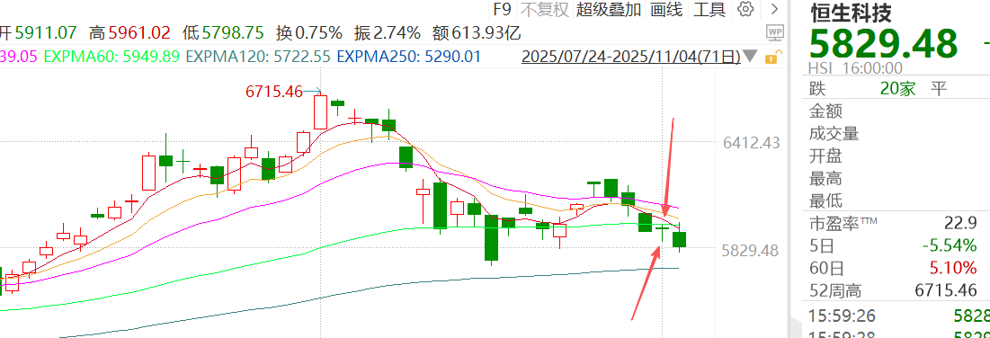 港股昨天就根本没出现踩刹车信号,只是个下跌中继,今天继续。