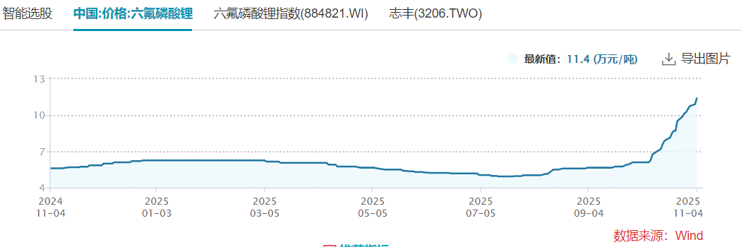 六氟磷酸锂今天跳涨到11.4万,比前一阵子涨速变快了,紧缺情况依旧。