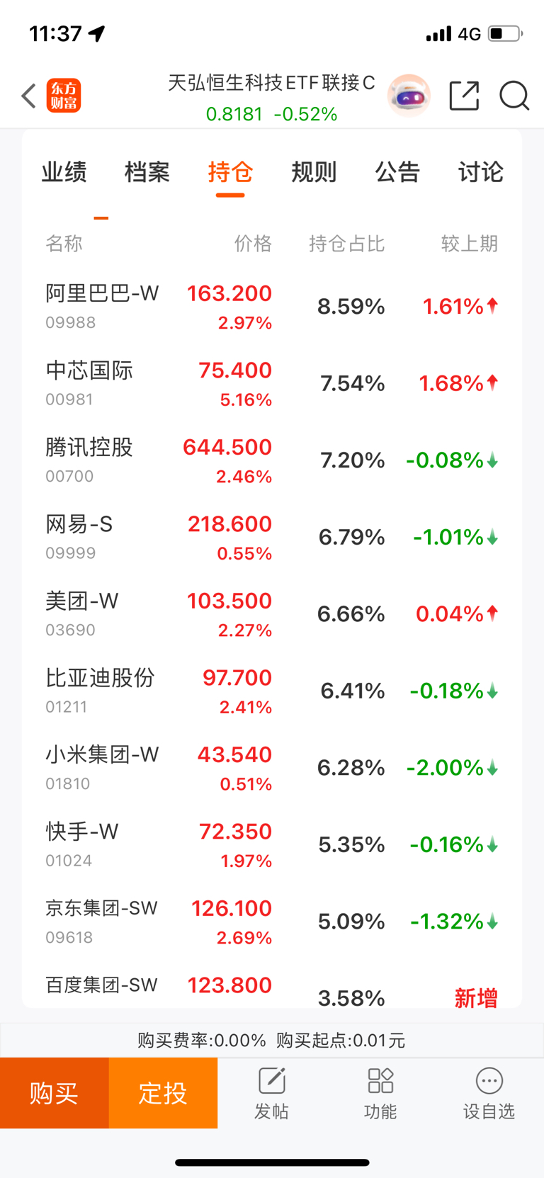 $天弘恒生科技ETF联接C(OTCFUND|012349)$ 今天全涨,今天的收益还是绿的就是有异常了。