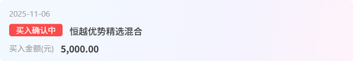 科技,我配置建仓5000元$恒越优势精选混合(OTCFUND|011815)$,这个恒越优势今年真不错,其在二季度加大了对科技的配置然后涨多了后做了一些止盈保住利润,今年涨幅来到了130%以上。然后后面一段时间又加大了对存储芯片和新能源储能的配置,算是这几次的大行情都把握住了,所以我今天先建仓一下等后续继续根据行情来灵活应对。而且储能、科技目前依然是市场比较活跃的题材,灵活应对了。