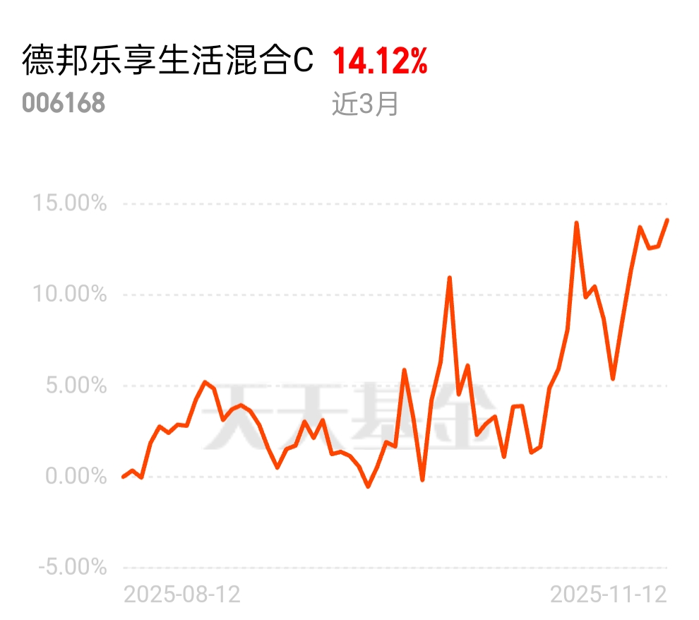 近期消费和科技板块跷跷板效应明显,资金悄悄往优质赛道挪,$德邦乐享生活混合C$ 抓住了切换机会,近1个月涨了9.17%,后续潜力看着足,我先占个坑等吃肉。