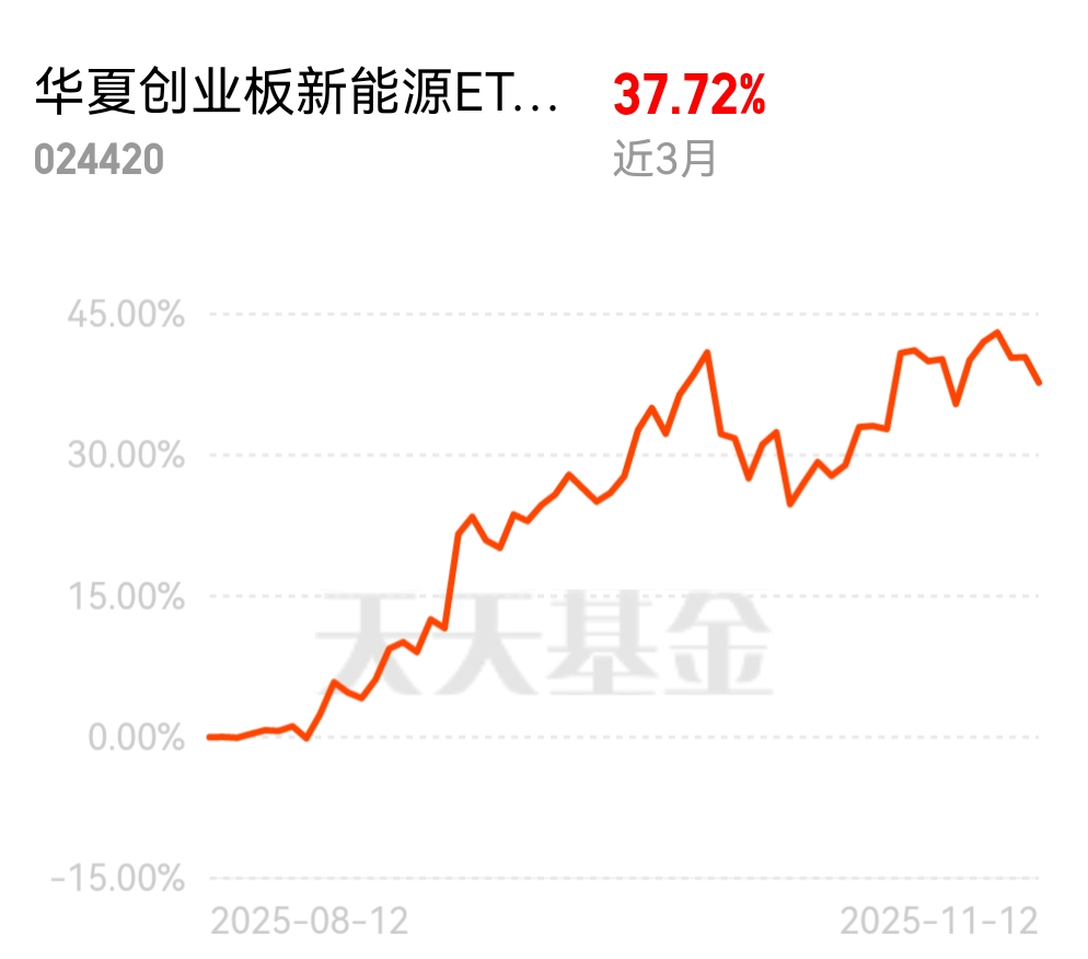 今天涨得太猛了吧!$华夏创业板新能源ETF发起式联接C$当前上涨5%+,成立三个多月收益超37%,是全市场首只,也是唯一一只创业板新能源场外指数基金,看样子要继续拿住啊$华夏创业板新能源ETF发起式联接C$