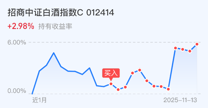 白酒,早盘开盘的时候$招商中证白酒指数(LOF)C(OTCFUND|012414)$涨一个多点,我想着能够做t一下了,结果回落了。回落的话,我就不动了,目前收益太低没有多少空间来做T,昨天突破年线了今天失守了,未来一周白酒的压力还是年线,突破了就会好很多,我还是定投中。