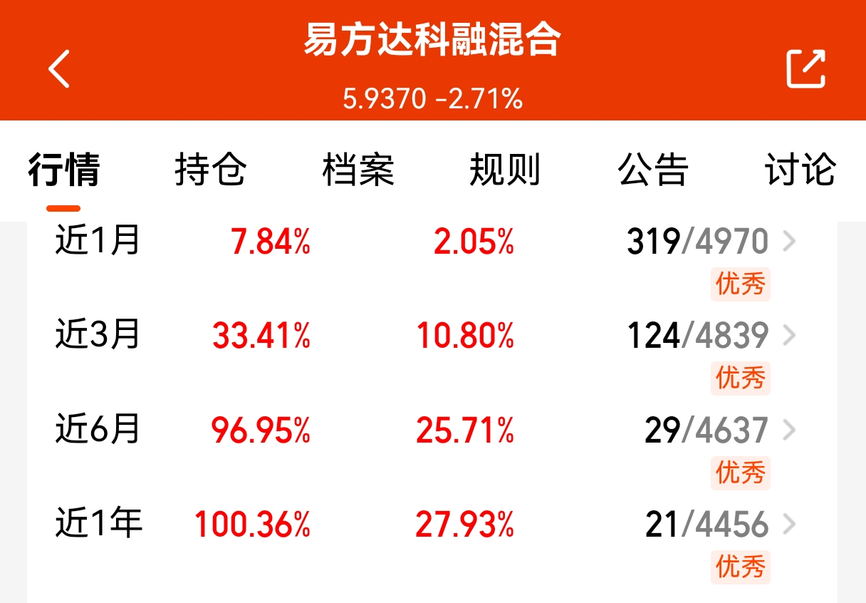 调整到位其实就会上涨,大盘近期有所波动,今日三大股指继续调整,成长行情轮动快,易方达科融这种深度参与科技、新能源、军工轮动配置,夏普比率优秀,是成长里的均衡之选,回撤控制得也很好,能涨抗跌,业绩也是很不错的,把握机会。