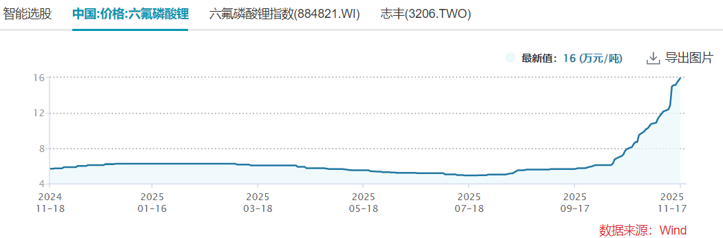 电解液的六氟磷酸锂价格今天直接从15w跳涨到16w。