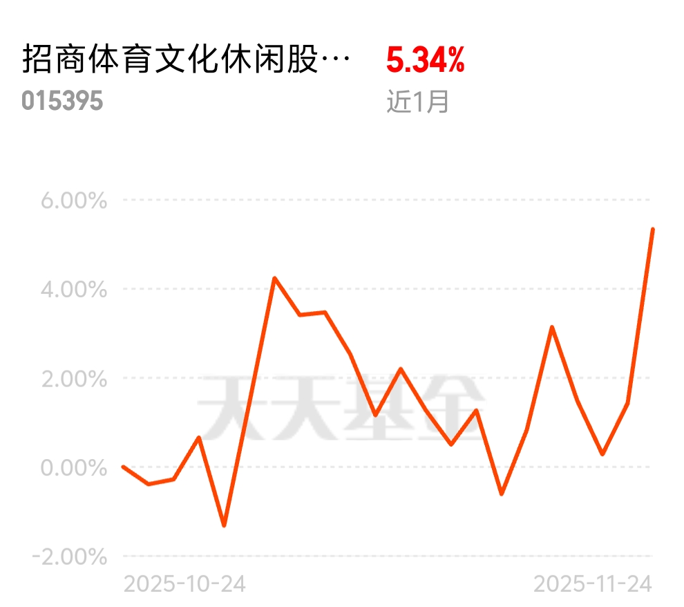 体育赛事带动周边产业发展,文化消费链条延伸,中证传媒指数今天涨超2.1%。招商体育文化休闲股票C紧跟热点,近1个月涨5.34%,昨日涨幅3.85%,把产业链红利全部拿下。