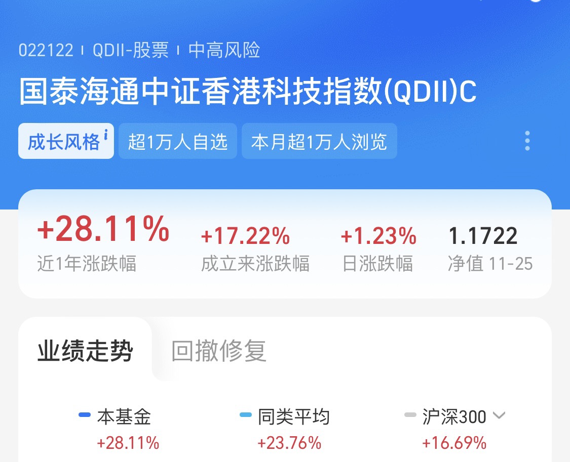 准备买点港股科技了,$国泰君安中证香港科技指数C$022122估值又低业绩还好,趁便宜多买点,棒棒哒