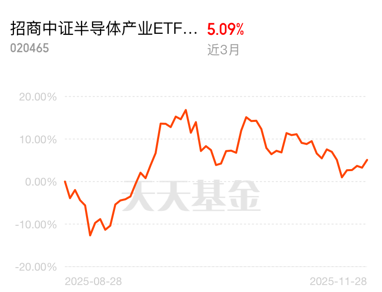 午后半导体资金持续流入,12 月端侧 AI 成为市场新热点。招商中证半导体产业 ETF 联接 C 近 3 个月 5.09%,紧跟产业节奏,算力 + 应用双主线轮番助力上涨。$招商中证半导体产业ETF发起式联接C$