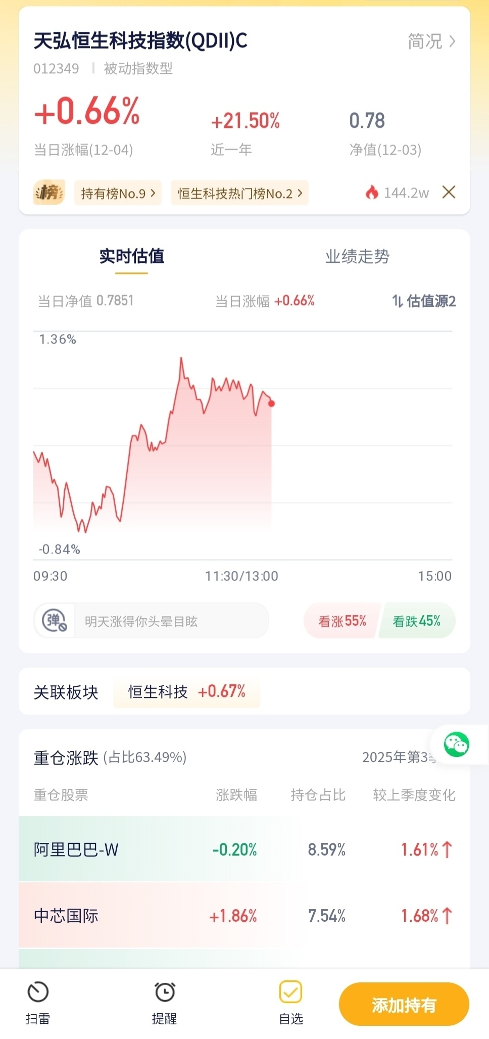 港股科技今天没掉链子,跟了波A股的热度,这基沾了港股科技的光,今天能小赚点~