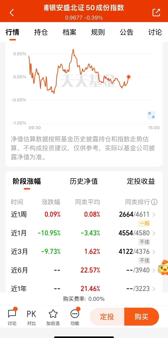 浦银安盛北证50跟踪紧密,后面额度只会越来越紧张,不限购的北证50操作起来$浦银