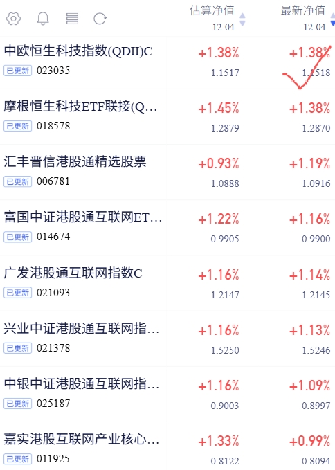 $兴业中证港股通互联网指数发起式C$ 1.13%。