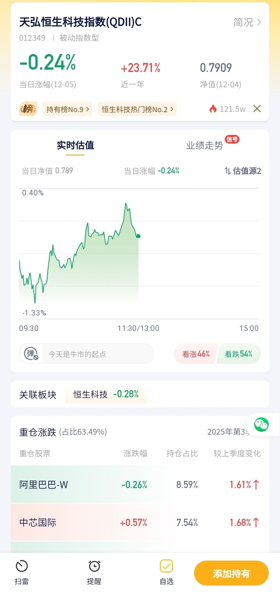 恒生科技今天有点蔫,港股那边科技股走弱,这基跟着小跌了点,属于今天少数拖后腿的~
