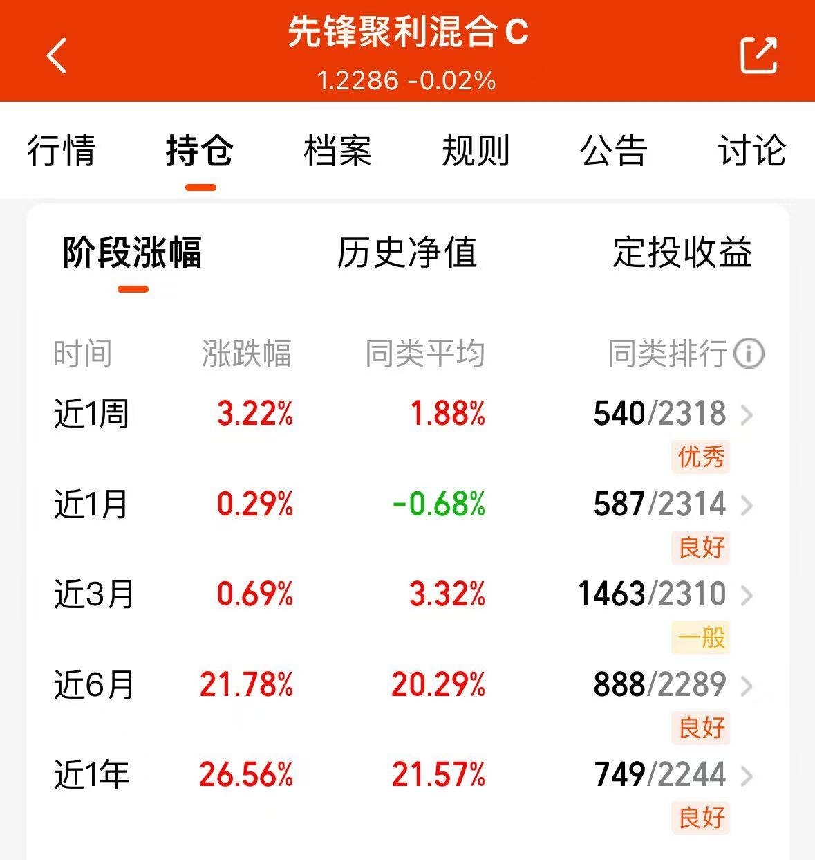 政策大力支持科技发展,国产替代进程加速,先锋聚利C紧扣这一趋势,持仓覆盖全链条核心标的是科技板块爆发的明确信号,现在上车正当时。