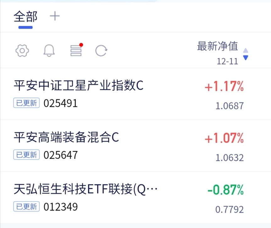 今天大盘调整,可以上涨的都不错。$平安中证卫星产业指数C$今晚上涨了1.17%,