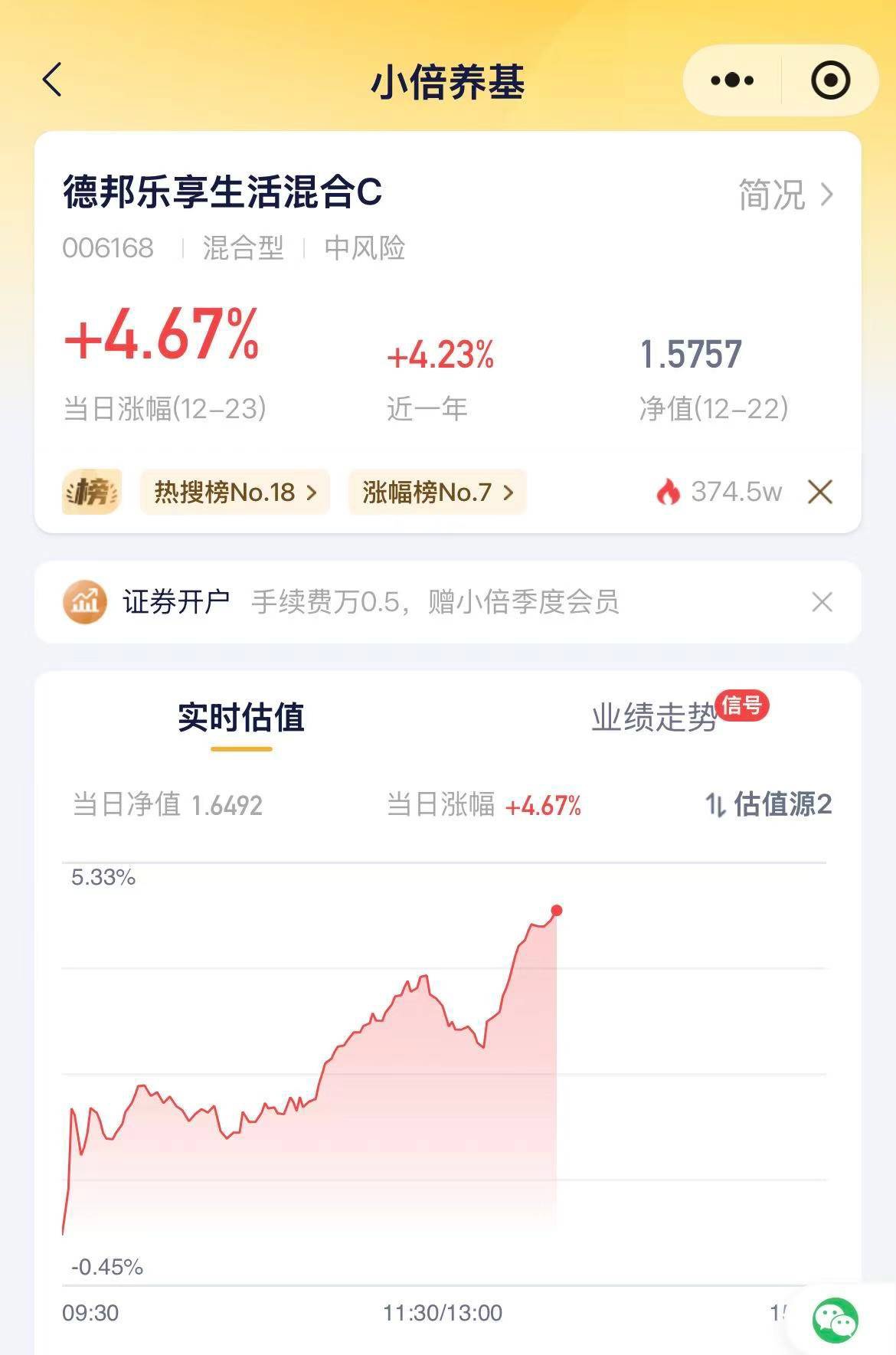 储能电芯供应紧张,电池企业订单火爆,这波行情必须抓住!$德邦乐享生活混合C$ 近 6 个月 12.51%,今天涨 4 个多点,想加仓的赶紧动手,坐稳等着赚钱。