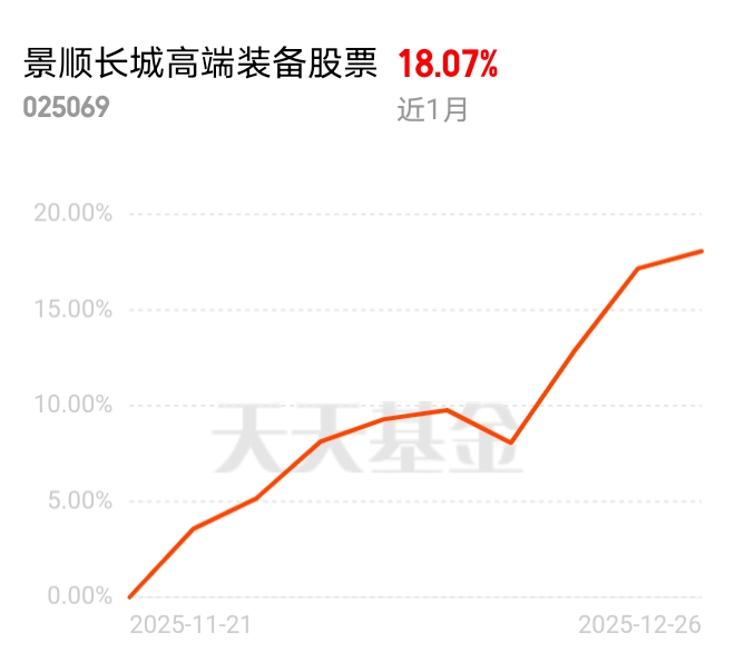 机器人产业链集体爆发,多股涨停点燃市场热情,景顺长城高端装备股票近 1 月 18.07% 紧跟趋势。今日涨幅 0.77% 连涨 3 天,估值红冲击 4 连涨,覆盖航天军工高端制造,成立晚但冲得快,浮动费率靠谱。$景顺长城高端装备股票$