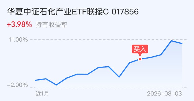 石化,前两天石油每天涨停,石化$华夏中证石化产业ETF发起式联接C(OTCFUND|017856)$弱了一些,原来是石油是纯正的而石化有化工什么,但这几天也避免了不少回调,我想了想再拿一些收益再说。