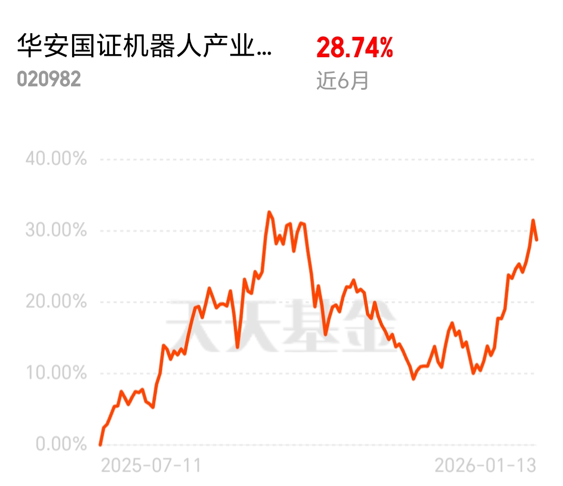 核心零部件突围,机器人量产落地,$华安国证机器人产业指数发起式C$ 近 6 月涨 28.74%,把握国产化替代红利