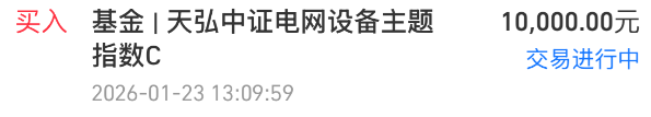 我加仓$天弘中证电网设备主题指数发起C(OTCFUND|025833)$ 10000元!跟踪的电网设备指数连续上涨创新高后,这两天小震荡纠偏5日线,正常调整,这不今天就又开始涨了,我继续大额冲上一笔,毕竟“AI的尽头是电力”已成为市场新共识。