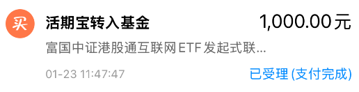 我加仓$富国中证港股通互联网ETF发起式联接C(OTCFUND|014674)$ 1000元!受隔夜平头哥上市预期催化,美股阿里大涨,今天港股三大指数也集体高开,不过盘中涨幅回落不少,港股通互联网指数这会看涨0.8%左右,正好趁还没涨太多,我抓紧上车一笔。