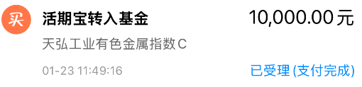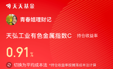 我加仓$天弘工业有色金属指数C(OTCFUND|017193)$ 10000元!跟踪的工业有色金属真是拒绝调整啊,昨天尾盘拉升差点翻红,今天这会看又直接涨超2%了,打不过、就加入,今天我继续大额上车一笔!