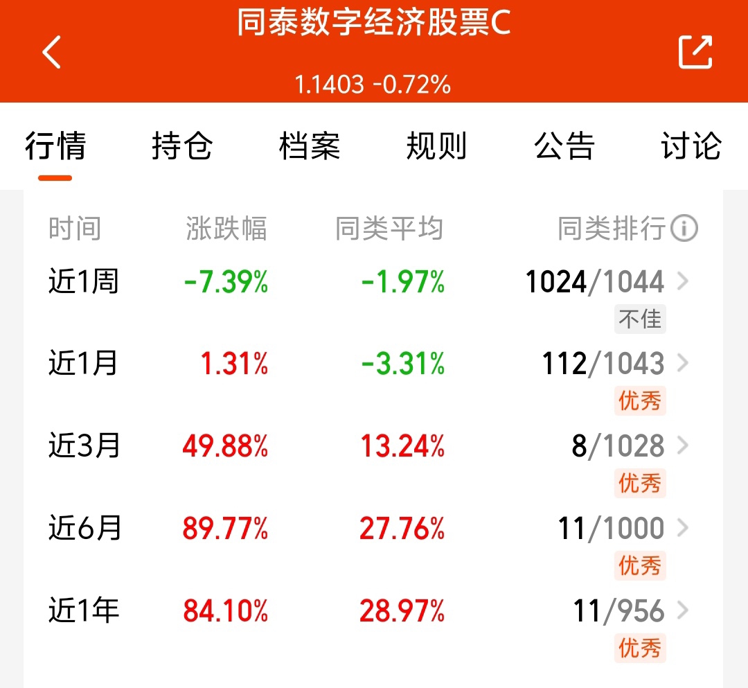 "科技投资找对基!同泰数字经济C近一年84.10%收益,同类前1%!全链路布局算