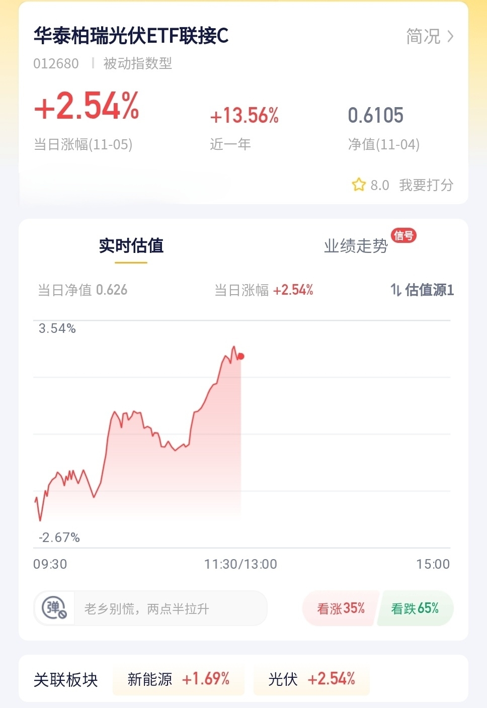 光伏今天表现可以,行业里不瞎卷了,都在优化产能、搞创新,基本面越来越扎实。我准备顺着这波行情,投点华泰柏瑞,跟着行业一起慢慢成长。