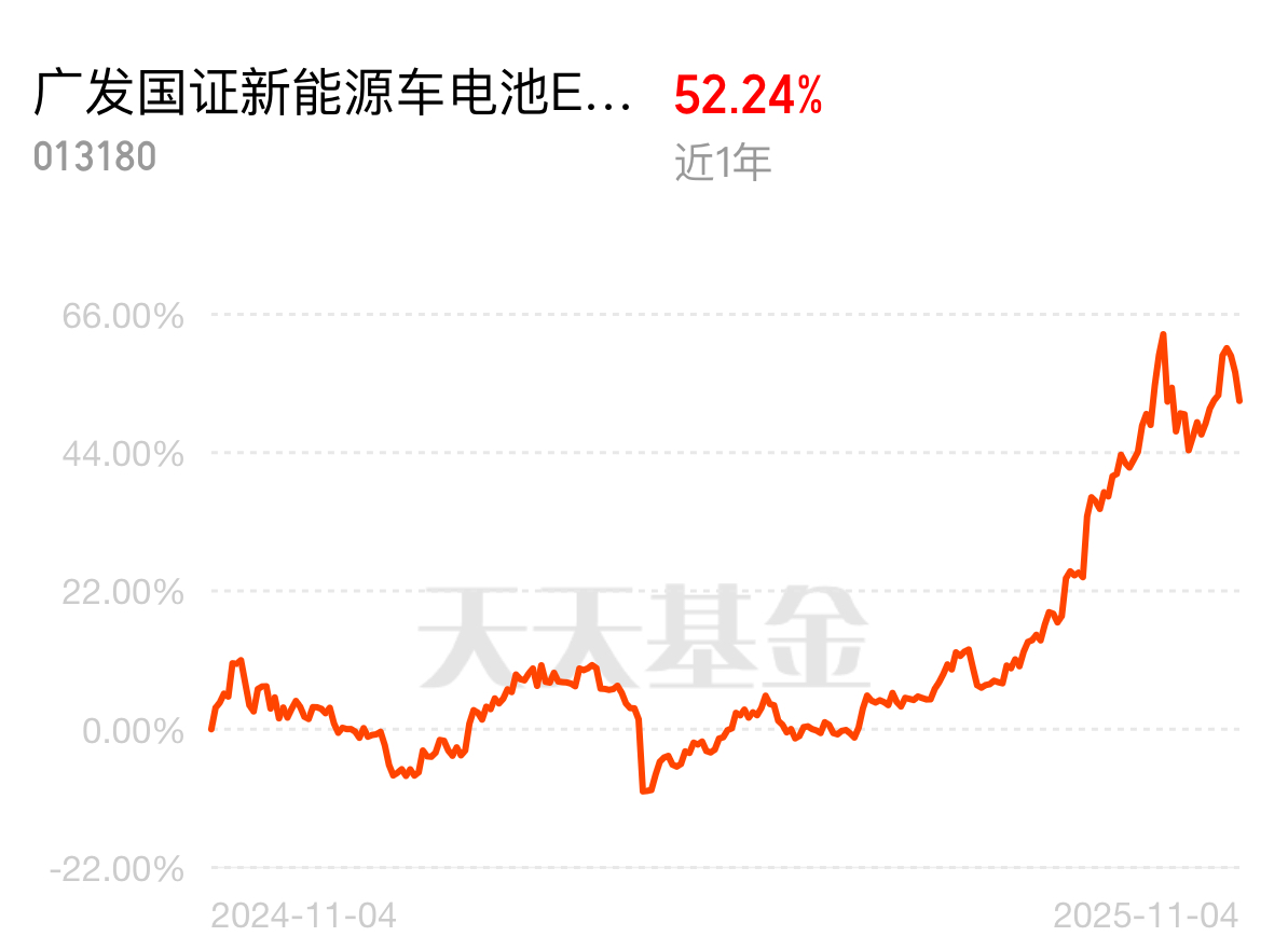 怎么现在才看到$广发国证新能源车电池ETF联接C$这只能涨基,半年已经涨到62%