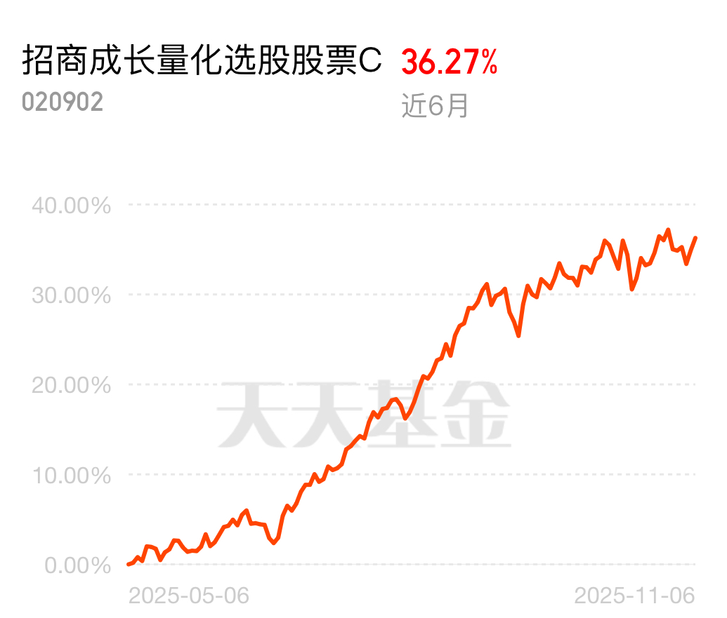 股市波动大,长期持有得选对基金,招商成长量化选股股票C近6个月涨36.27%,近