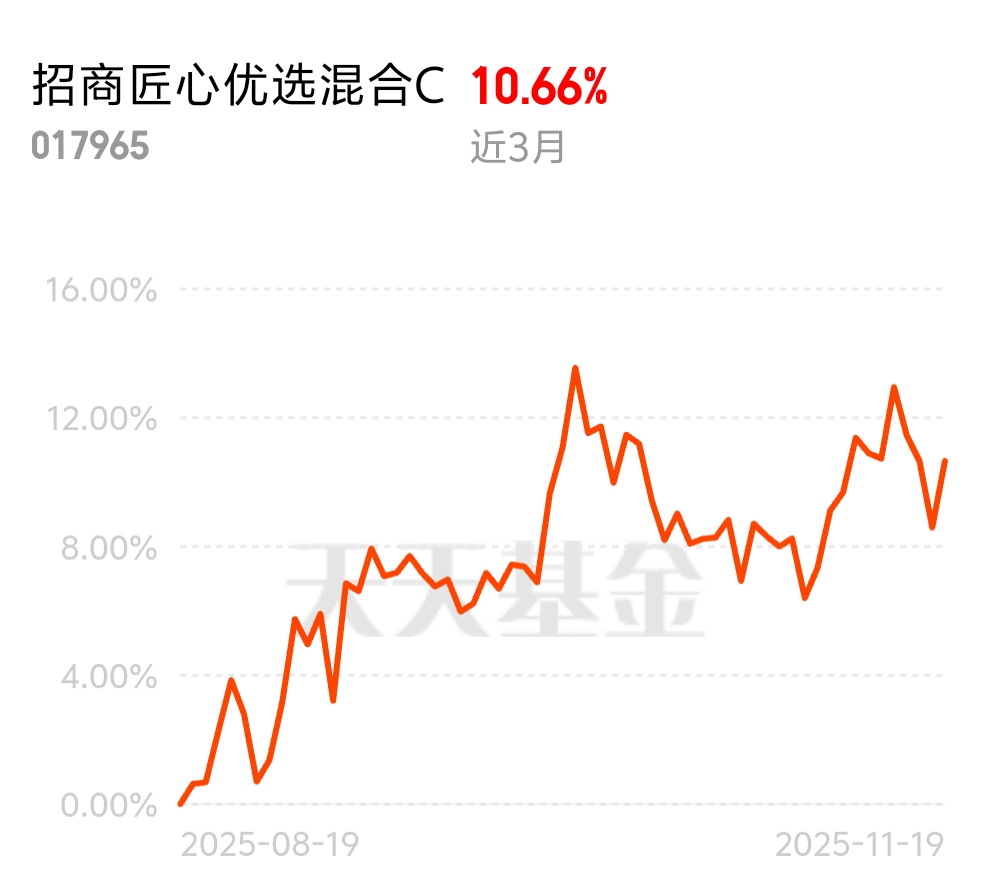 现在市场上不少基金产品抗跌性差,一遇到震荡就大幅回撤,让人揪心。但招商匠心优选混合C不一样,近3个月收益10.66%,在波动中依然保持稳健上涨,实力让人放心。