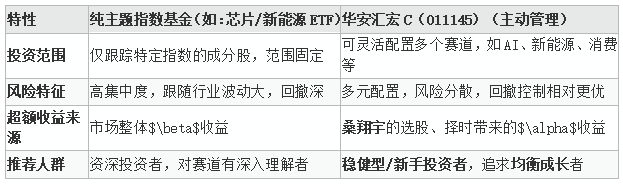 许多投资者在“主动型”和“指数型”之间纠结。我的观点是:在AI和新能源这类技术迭代快、行业集中度高的赛道,优秀的主动管理基金往往能通过精选个股和灵活择时获得超额收益。