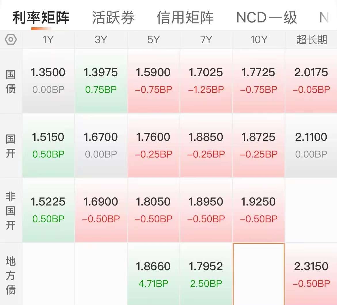 好消息,双债拉升,利率债已经翻红了,信用债这边也拉升了不少,城投债还不错,产业债红绿参半,银行债虽然不太好,但是也有所拉升哈!