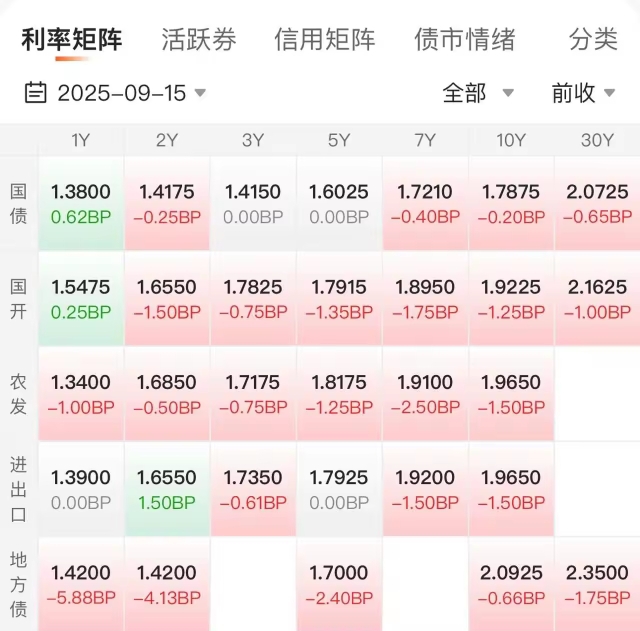 债市下午:利率债总体变化不大,稍微回升中。。。晴天的天气,信用债这一块儿也都是晴天,城投债板块儿晴天,可转债还是中雨天的天气,银行2级债券也都是晴天,希望尾盘可转债以及利率债持续回升起来吧。