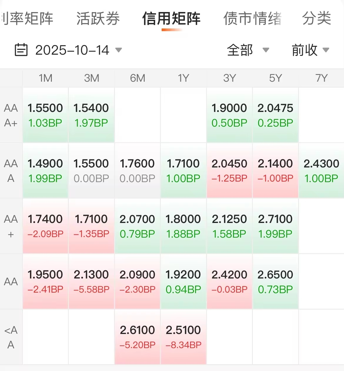 你敢信吗?债市早上生机勃勃,下午就来了个大反转,所以梦想还是要有的,万一真实现了呢,利率债目前拉升的还可以,大多数已经红了,信用债高等级的弱一些,但是稳住问题不算大,期待双债继续拉升。
