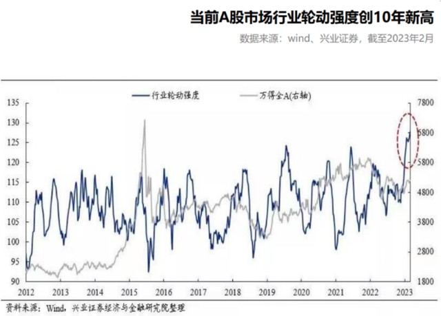 今年以来,大家最大的感受就是,市场行业轮动太快了,找方向太难了。大家的感觉没有错,兴业证券的一组数据显示,当前A股行业轮动强度已经创下了10年新高!