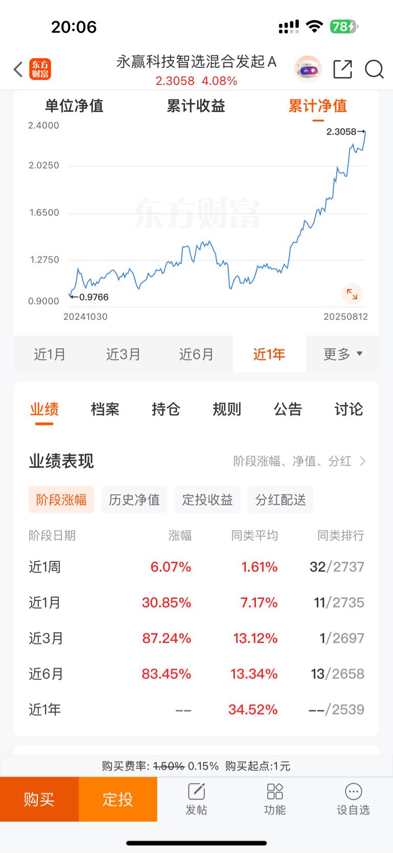$汇泉策略优选混合A(OTCFUND|012412)$ 永赢太厉害了!
