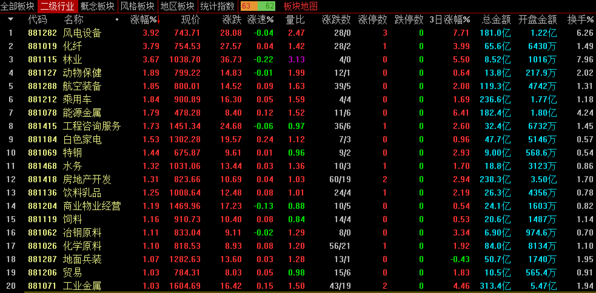 今天沪指低开低走,最后收了绿盘,但涨跌幅度不算大。抱团资金分化得挺明显,尤其是科技,分化特别严重。这几天来回拉动的就那几只票,能影响到创业板指数,剩下的其他科技,压根没什么亮眼的表现,整体看着比较平淡。现在我们看看板块趋势: